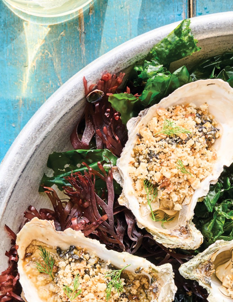 Baked Oysters with Seaweed & Wild Mushroom Beurre Blanc and Buttery Breadcrumbs