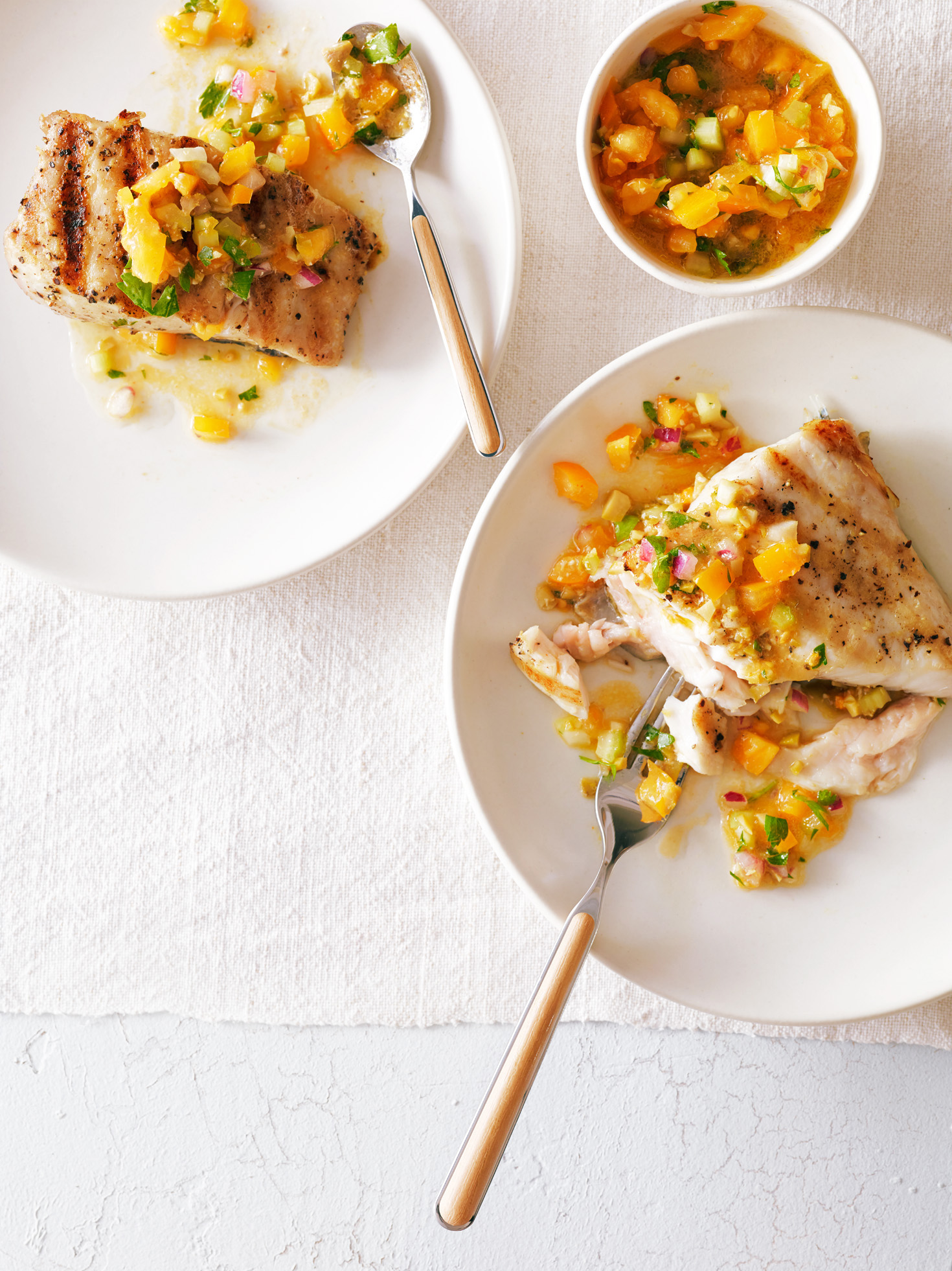 This white fish is mild, slightly sweet, and firm-yet-flaky. Low in saturated fat and sodium, and packed with protein and omega-3s, it’s the perfect main course for weeknight meals or dining alfresco with friends. Poached, steamed, baked, grilled, or sliced fresh—halibut’s always an approachable, versatile star of the show.