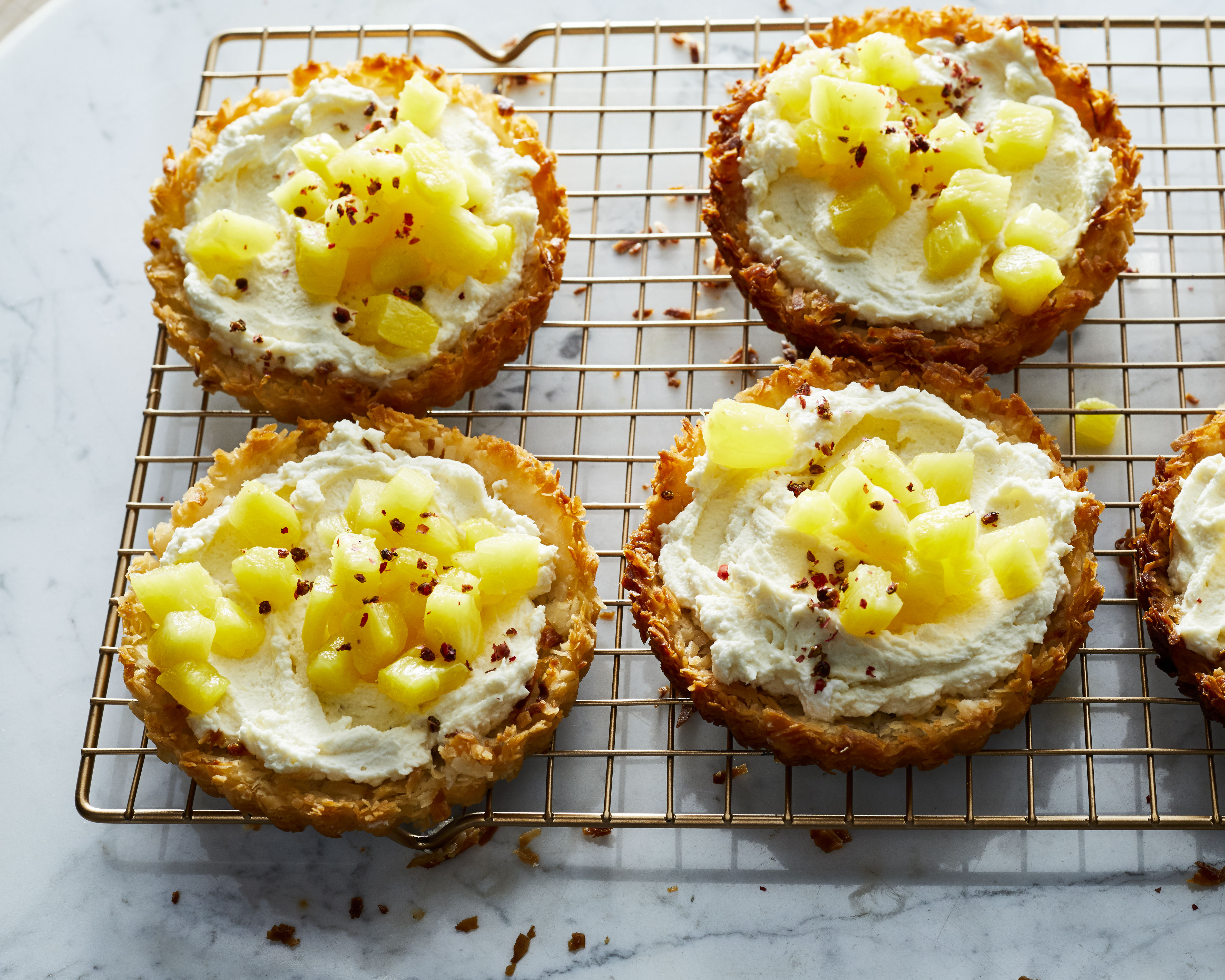 On the dessert front, there’s a lot to play around with thanks to the delicious fruits that are in season. Think juicy strawberries, colorful stalks of rhubarb, sweet and tangy apricots, plump berries of all sorts (blackberries, raspberries, blueberries), zesty citrus, golden pineapple, and the first pick of in-season cherries. It’s the perfect time for galettes, tarts, and more.