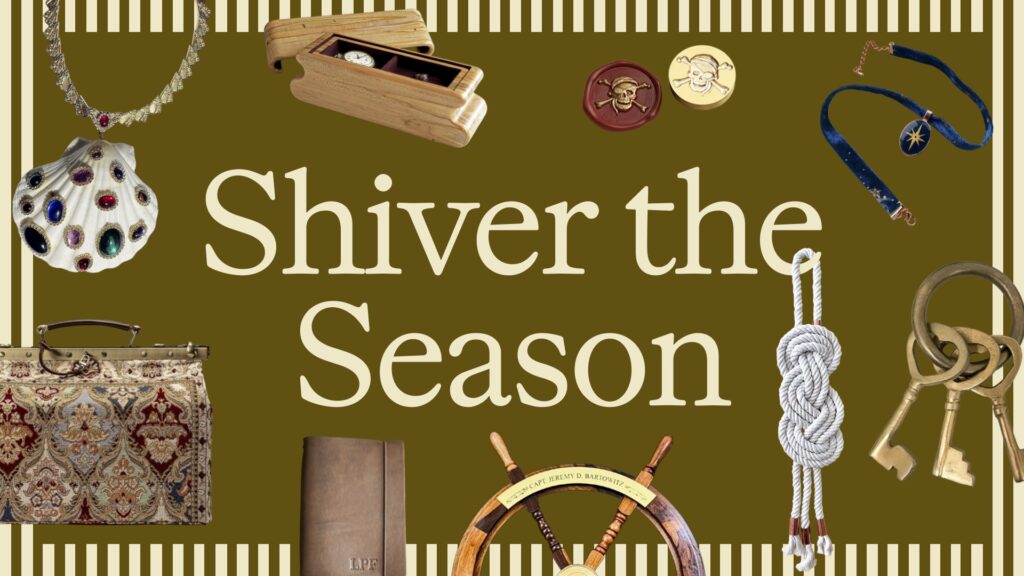 Finally, we have Shiver the Season. This aesthetic takes the whimsy, drama, and ornateness of previous ones like Nutcrackercore and entirely reimagines it. With mixed metals, jewels, and leather pieces, Shiver the Season highlights nautical, “swashbuckling” elements that create a sense of adventure. A featured item in the Shiver the Season edit is mystery jewelry jars, which Isom Johnson calls “modern-day treasure chests.”