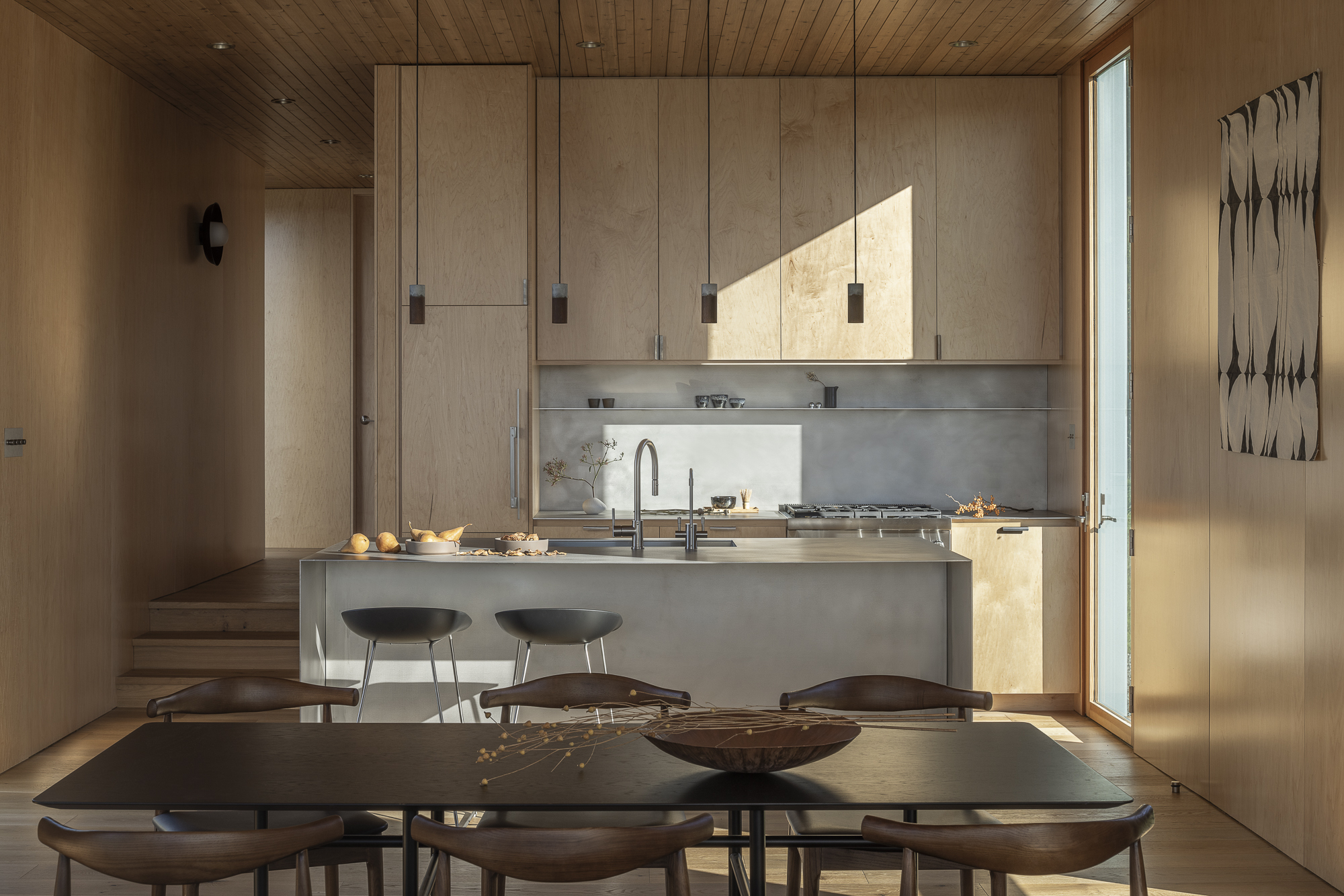 Our team of eight architects and designers are focused on bringing a project from concept through finished construction and lived reality. We work closely with fabricators, craftspeople, and artists to custom design and build bespoke furniture, hardware, textiles, and interior and exterior elements that are specific to the vision of the client and design concept.