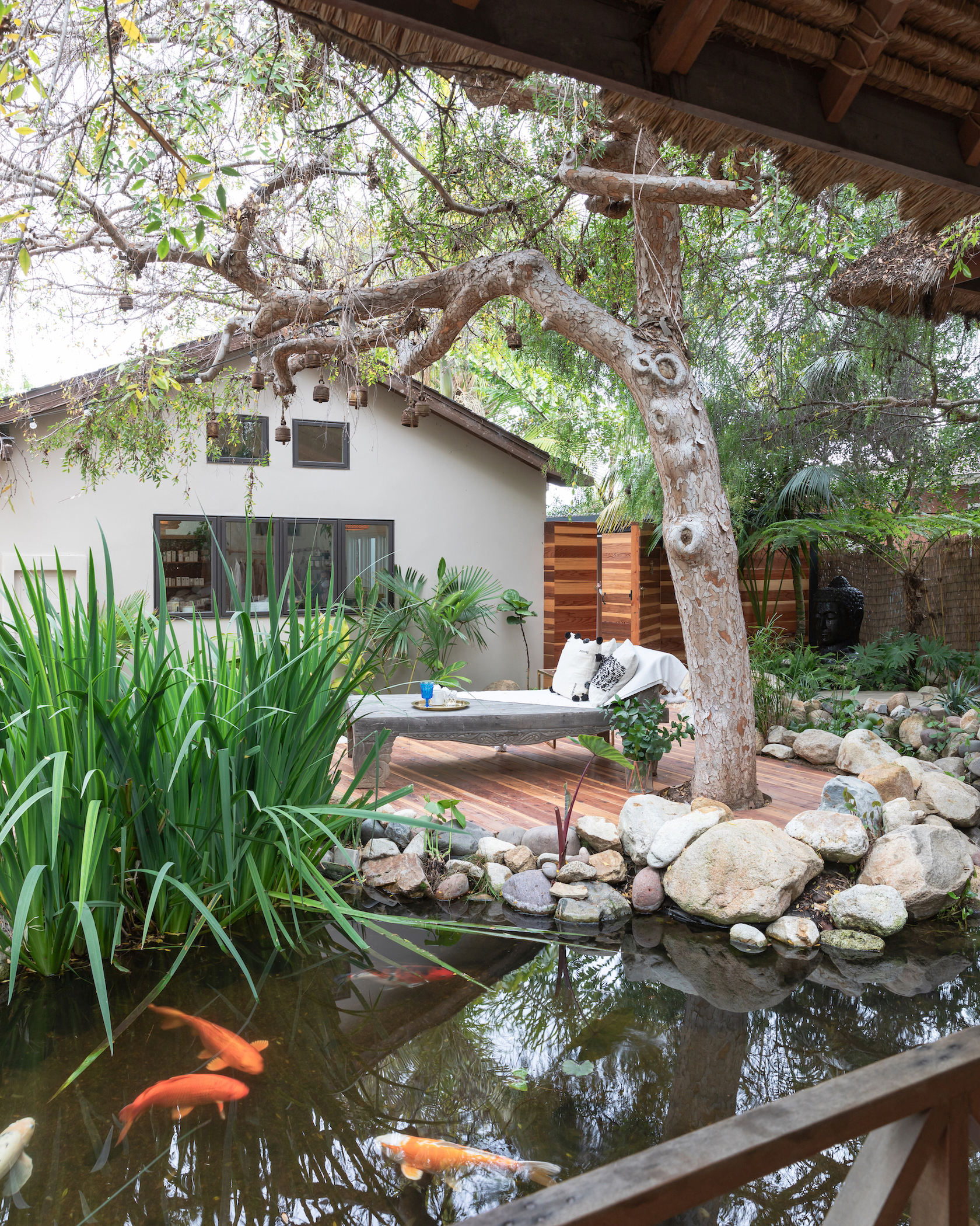Tucked into a quiet coastal enclave of Encinitas, Four Moons Spa is more than a wellness destination—it’s a wellness playground. A sanctuary for self-discovery, restoration, and ritual, this unique property blends traditional spa services with transformational healing, intuitive experiences, and thoughtfully curated programming to nurture both body and spirit. Guests are invited to unwind in a variety of immersive treatment spaces, including private bungalows, a Balinese bale set above a tranquil koi pond and waterfall, a hammam room, an outdoor soaking tub and sauna, and a serene courtyard framed by succulents and coastal palms. Between treatments, guests can sip tea on an outdoor daybed, explore the on-site boutique filled with intentional finds, or join in one of many classes and workshops hosted throughout the week. Spa offerings include deeply therapeutic massages—from prenatal to lymphatic—as well as organic facials like sculptural face lifting with buccal and detoxifying body treatments. For those seeking a more expansive journey, Four Moons also offers acupuncture and an array of intuitive and energetic experiences, including yoga, sound healing, somatic experiencing, spirit readings, human design, and psychic or tarot guidance. Beyond its day-to-day offerings, the property transforms into a distinctive venue for private gatherings—from intimate blessingways and showers to corporate retreats and summits. Whether your journey is one of rest, renewal, or reverence, Four Moons invites you to come as you are and get what you need.