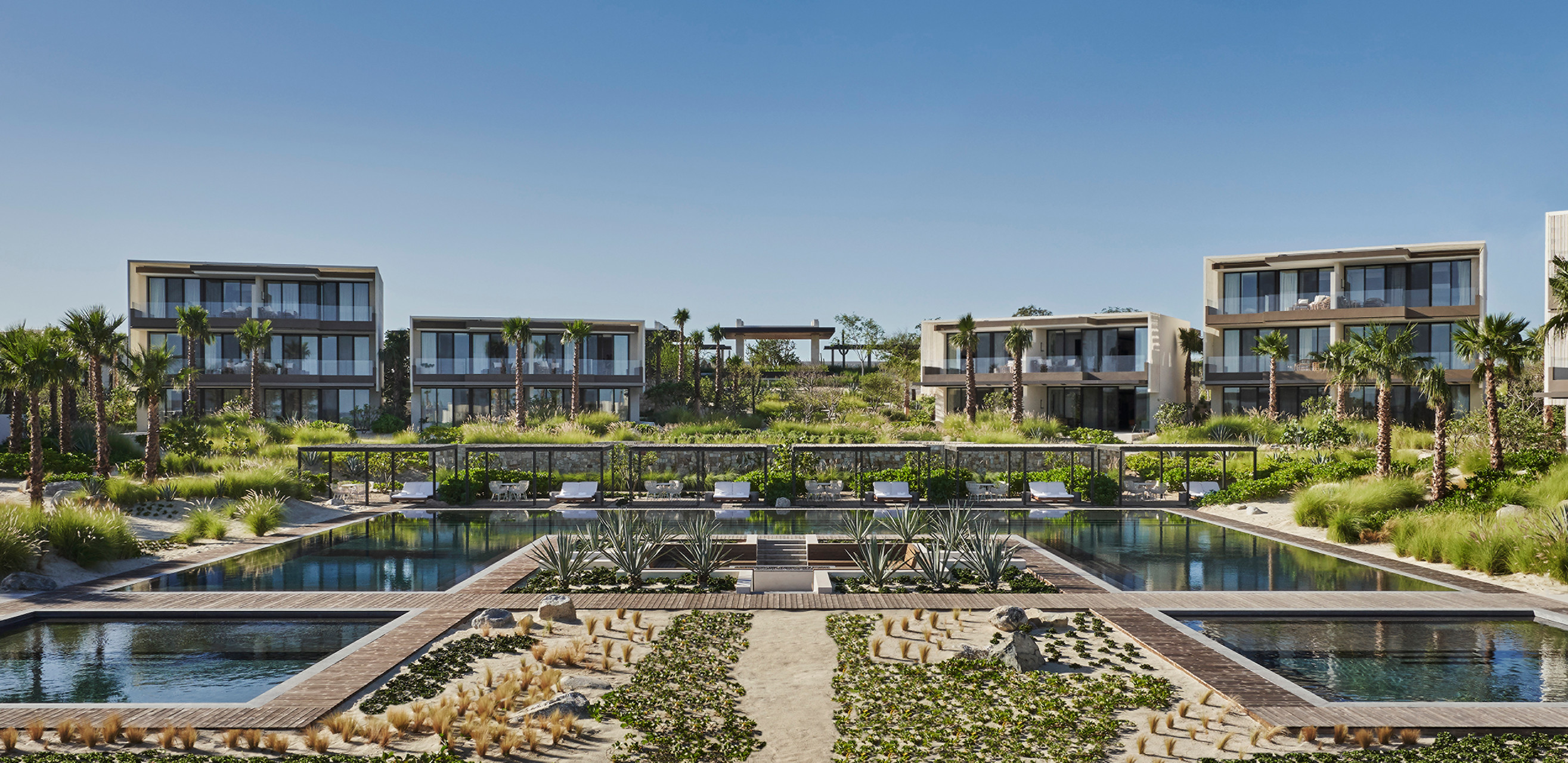 Thoughtfully and sensitively designed and situated along a two-and-a-half mile (4 kilometer) stretch of swimmable beach, Four Seasons Resort Los Cabos at Costa Palmas introduces an elemental form of luxury hospitality set among organic farms on an international marina. The resort, including 118 guest rooms and 23 suites, features a low-density layout spread across multiple buildings with views of the Sea of Cortez and the Sierra de la Laguna Mountains and is designed by Brooklyn-based Guerin Glass Architects. This ultra-luxury resort is situated in Baja’s undiscovered East Cape on 2 miles (3.2 kilometers) of pristine beachfront within the thousand-acre private beachfront community of Costa Palmas. The first Four Seasons marina resort, Four Seasons Resort Los Cabos at Costa Palmas opened October 2019.