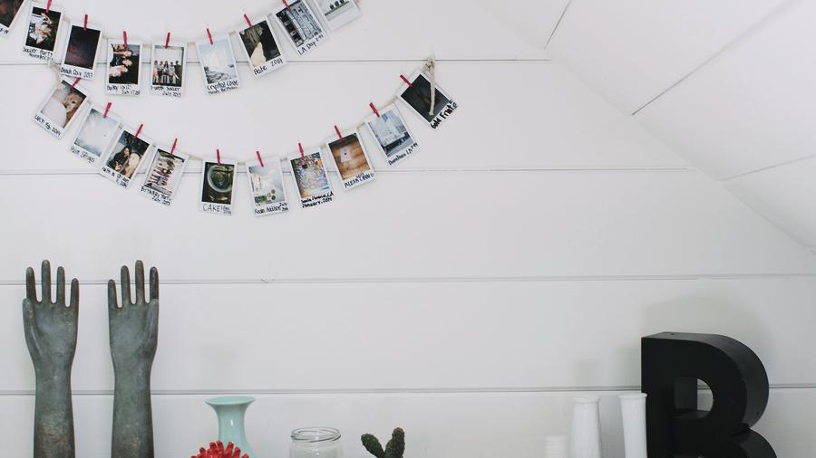 The book is full of creative vignettes. This one may be in a Southern California teenager’s room, but we love the idea of displaying photos clothesline-style in any part of the house.