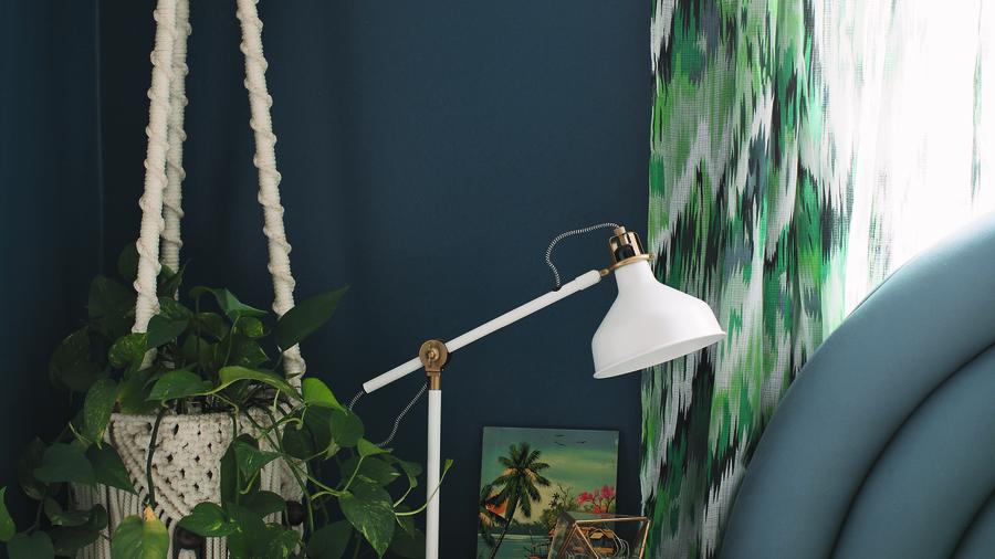 This room, in the San Francisco home of interiors expert Susie Ho, is full of quirky touches–a 1970s headboard, Hawaiian art, macramé–and yet looks totally sophisticated, with the help of the inky blue walls and the brass-and-white IKEA lamp (among the best IKEA finds).
