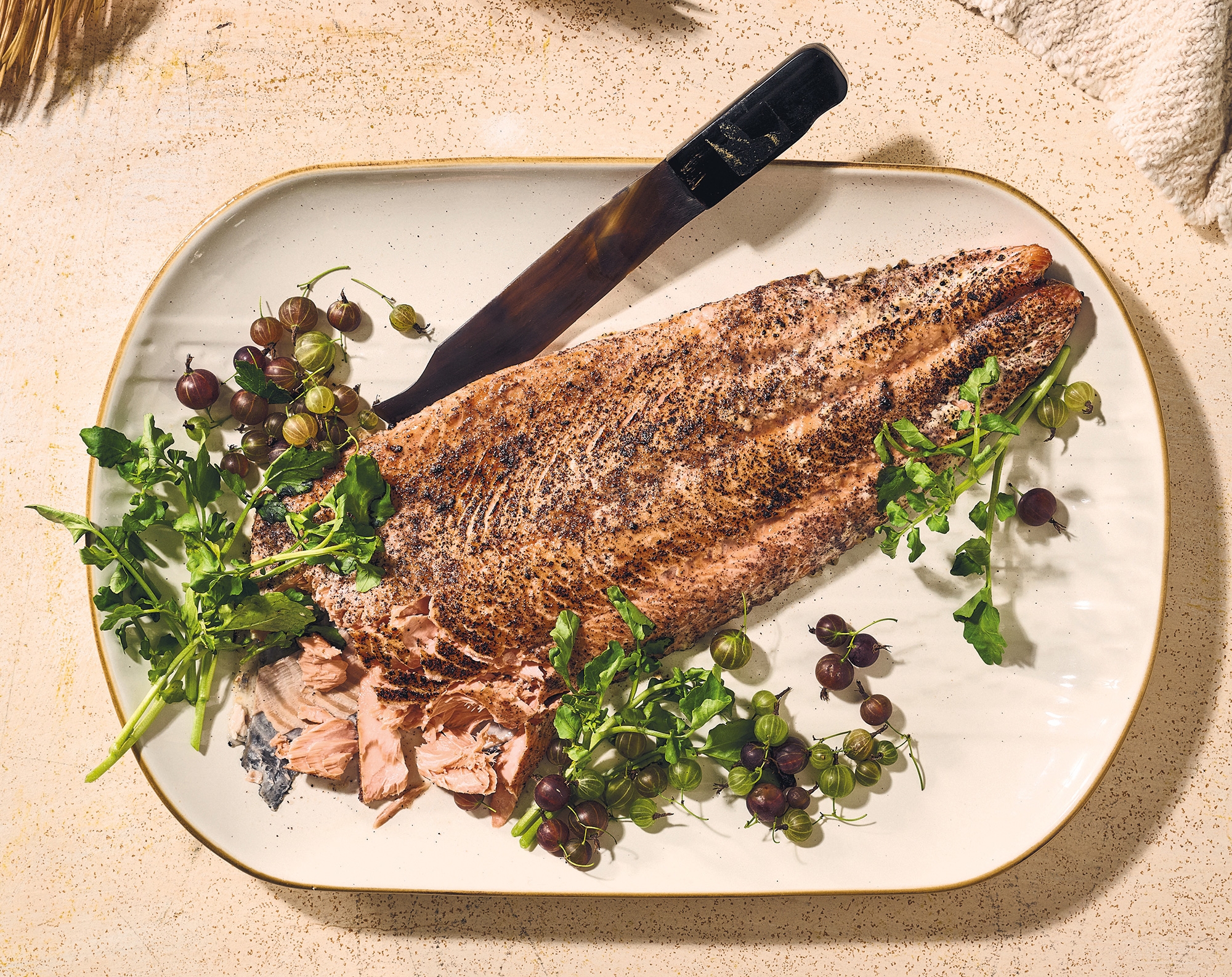 West Coast Oysters with Dried Salmon, Manzanita Powder, and Wood Sorrel