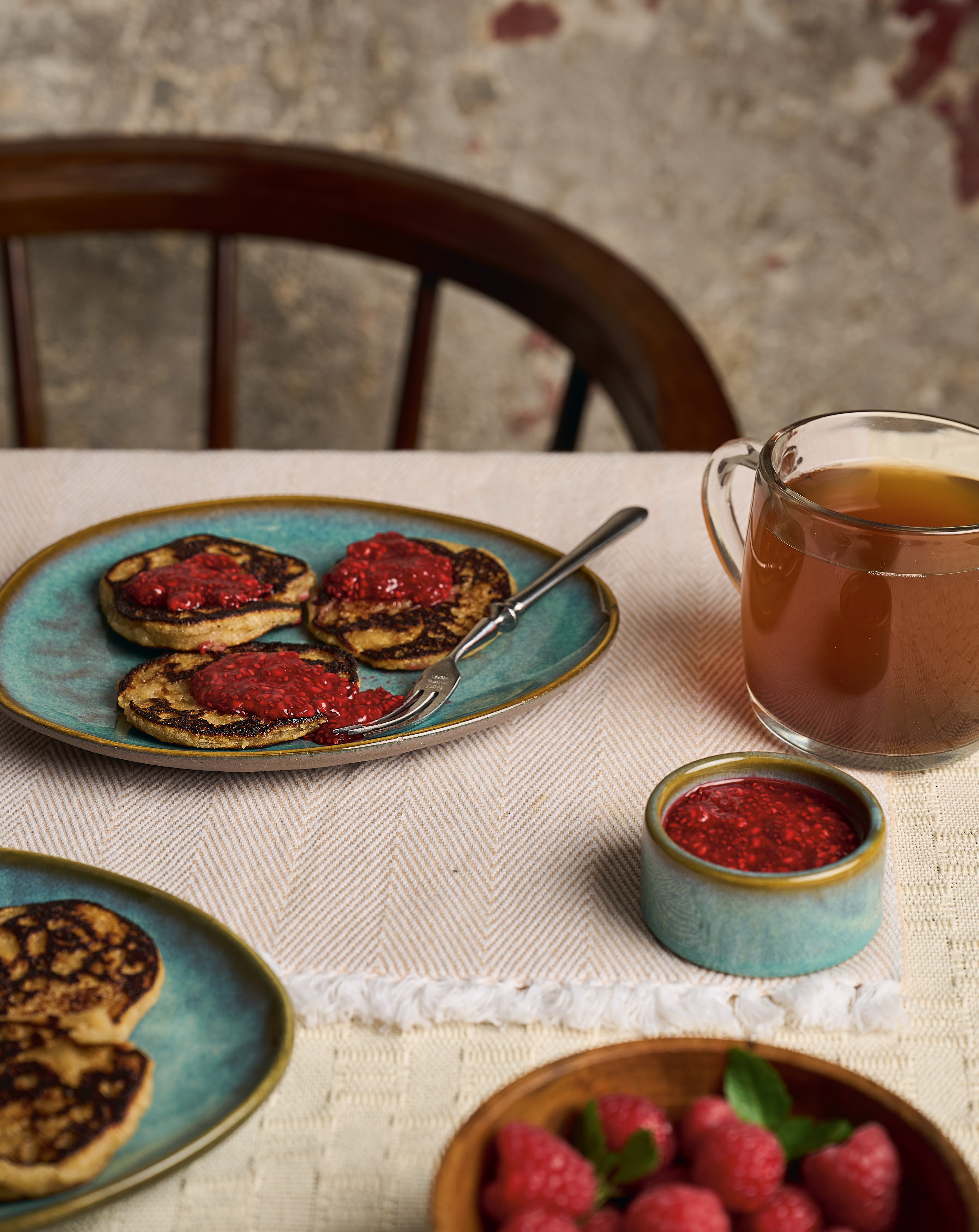 Sweet Pinyon Griddle Cakes with Chia Berry Jam