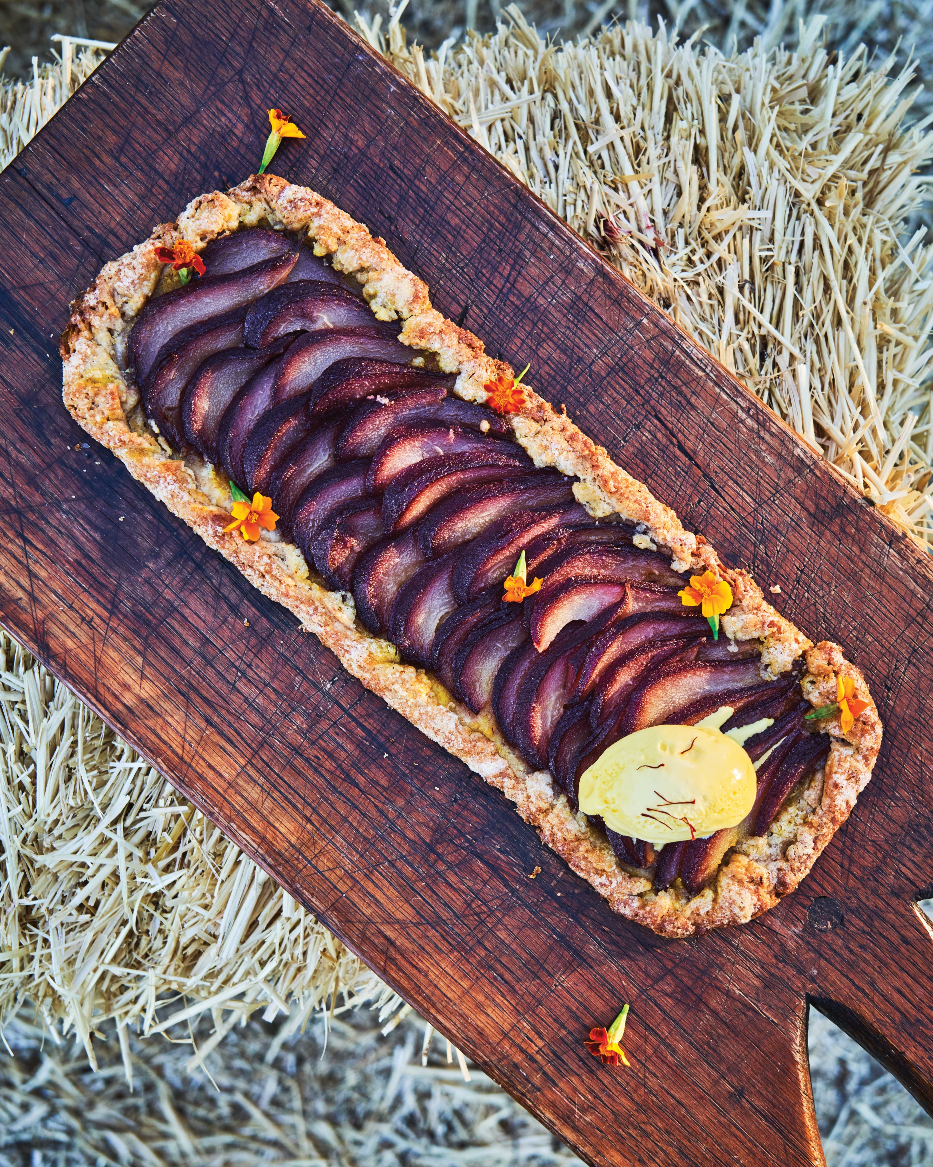 Poached Pear Galette with Saffron Ice Cream