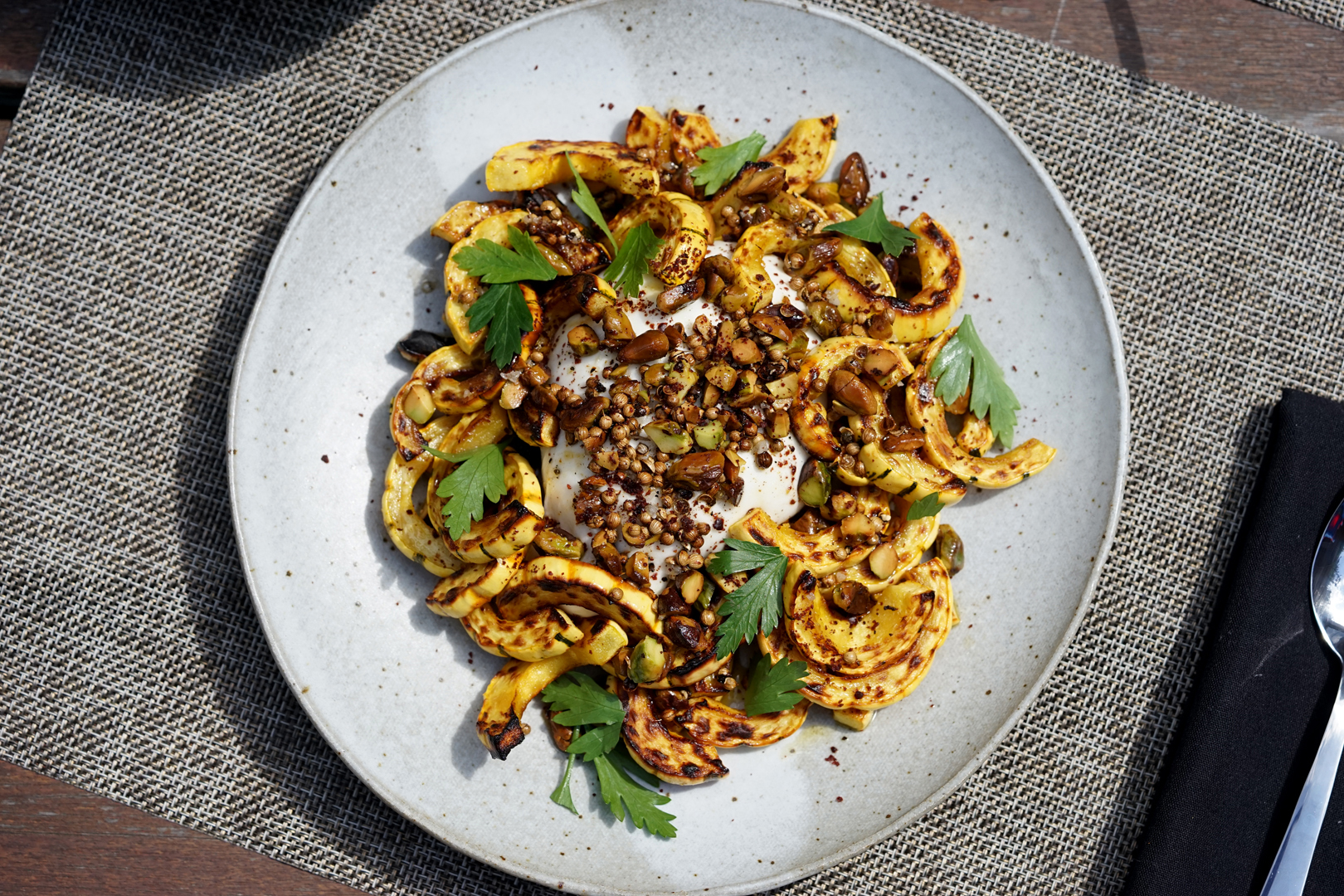 Delicata Squash with Burrata and Toasted Pistachios