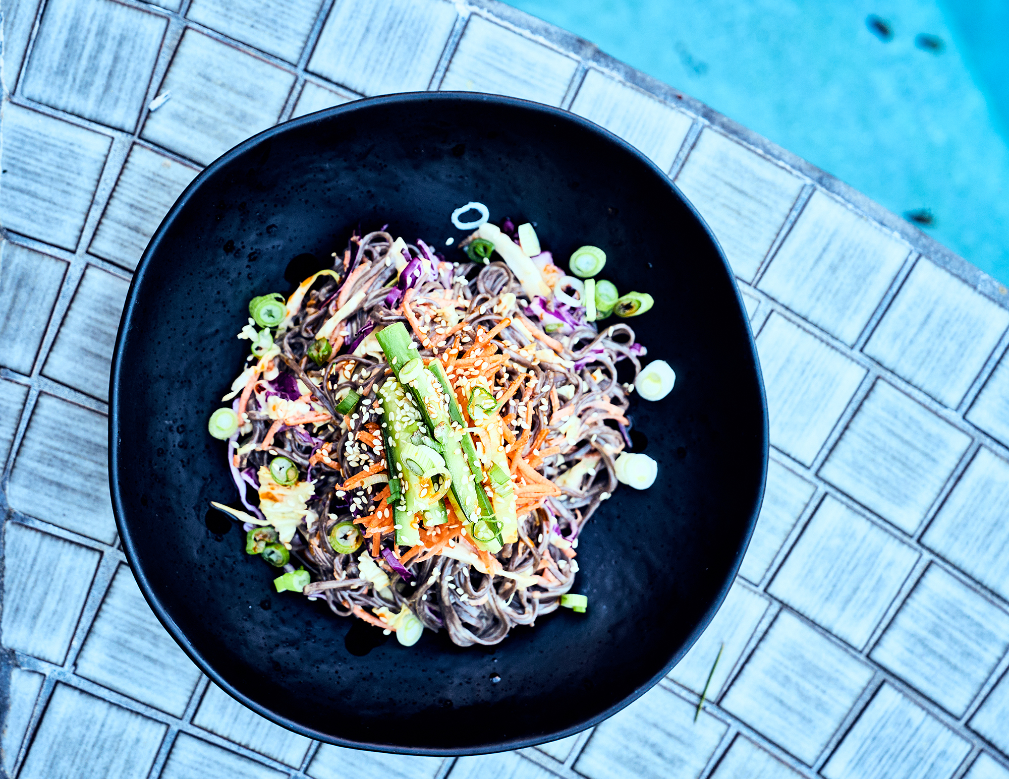 Autumn Chicory Salad with Roasted Delicata, Apple, Savory Seed & Seaweed Granola, and Black Tahini Dressing