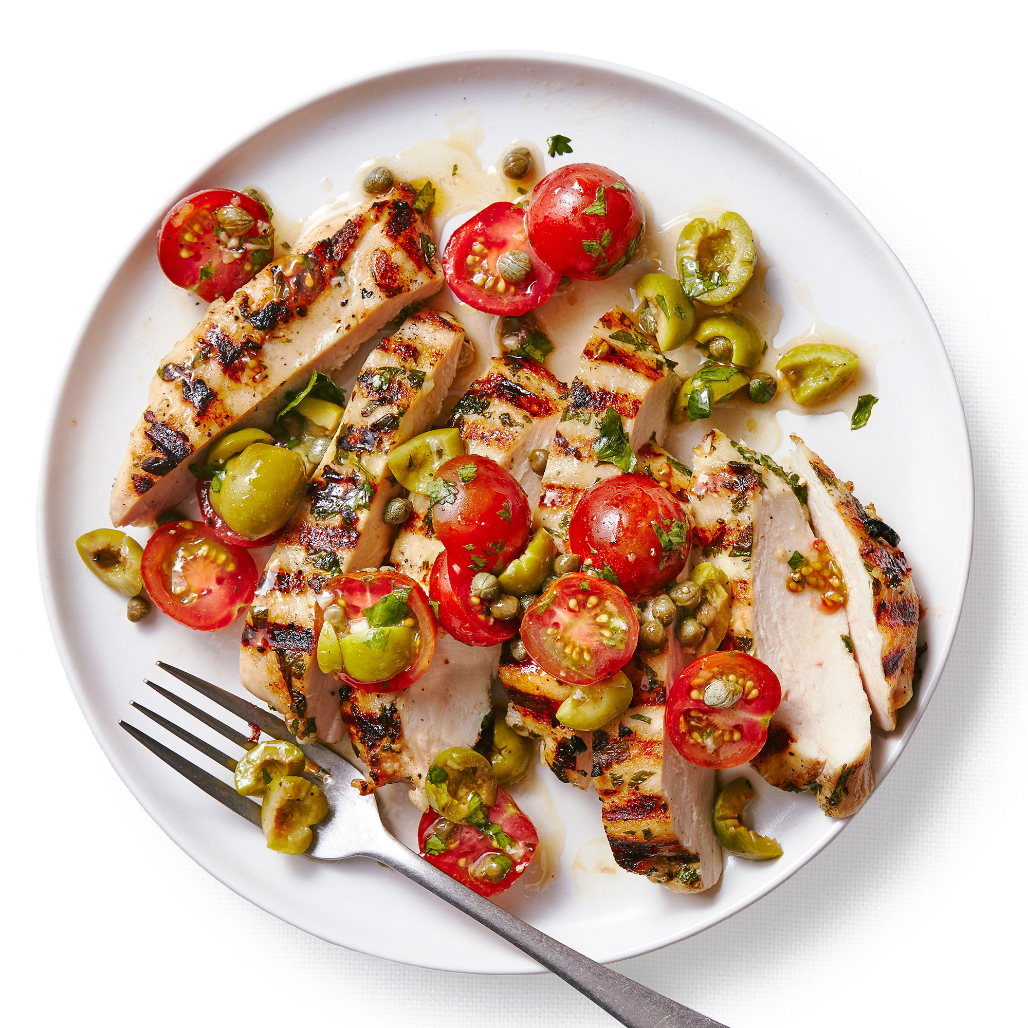 Chicken with Green Olives, Capers, and Tomatoes