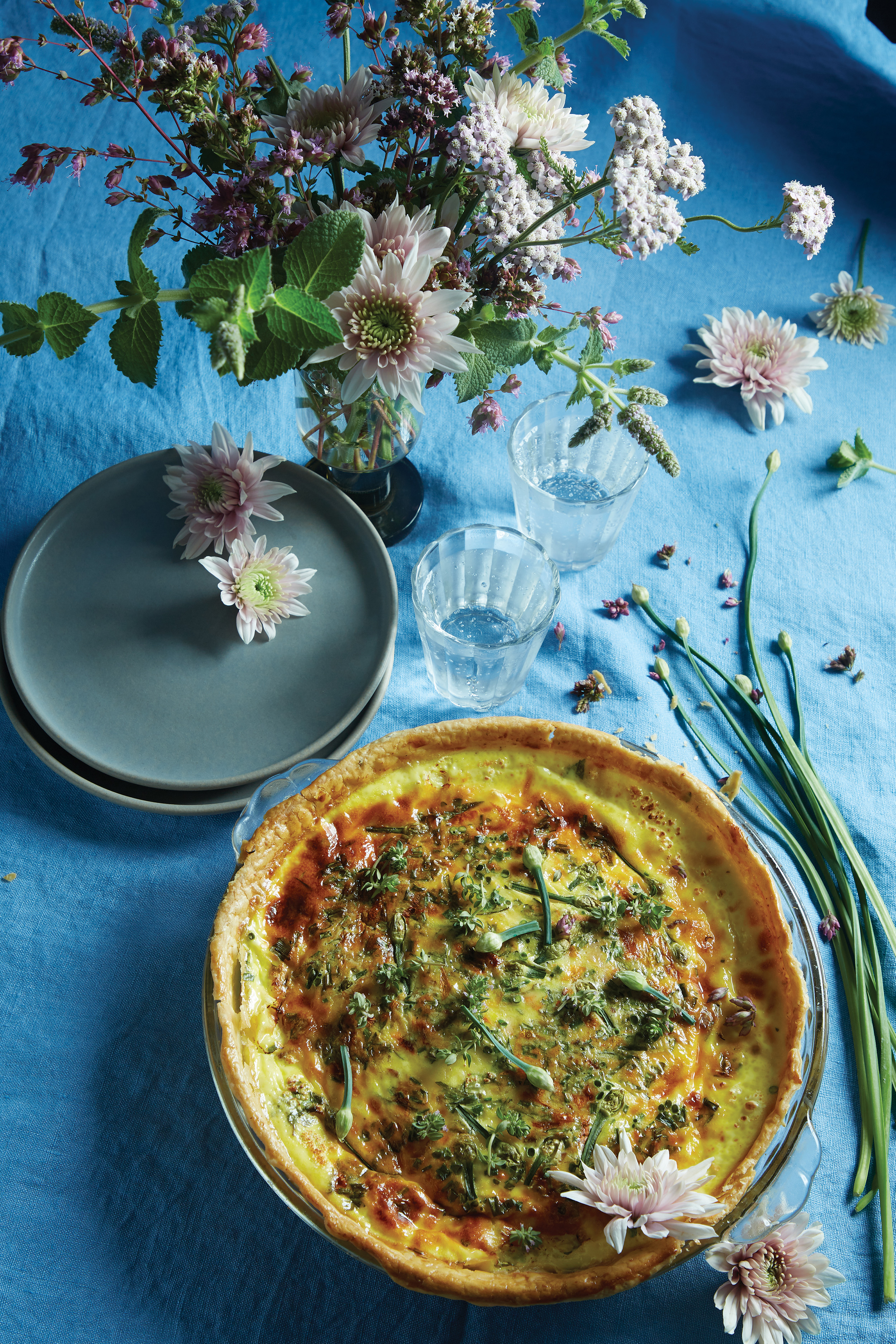 Calendula, Gouda, and Bacon Quiche with Fresh Blooming Herbs