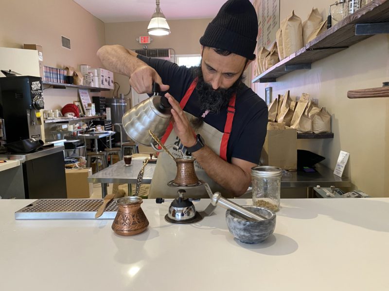 Turkish coffee, an invigorating type of unfiltered coffee made from finely ground beans, offers a deceptively thick mouthfeel with a smooth taste. Produced in the “cowboy” style, the grounds are mixed liberally with cold water before being heated in a cezve vessel and mixed with muddled cardamom seeds and, in some preparations, sugar or cocoa. We asked Aharon Vaknin of the eponymous Aharon Coffee in Beverly Hills to walk us through his technique.