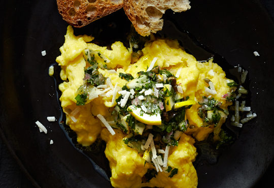 Scrambled Eggs with Meyer Lemon Salsa Verde