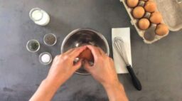 We love this technique for soft, creamy scrambled eggs. Full-flavored cheeses and a touch of crème fraiche, and a distinctive Meyer lemon salsa verde make this an egg dish you’ll return to over and over. You’ll find lots of uses for any leftover salsa verde.