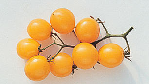 Notes: Gold-fleshed cherry tomato is as sweet as candy. Fruit splits in rain.