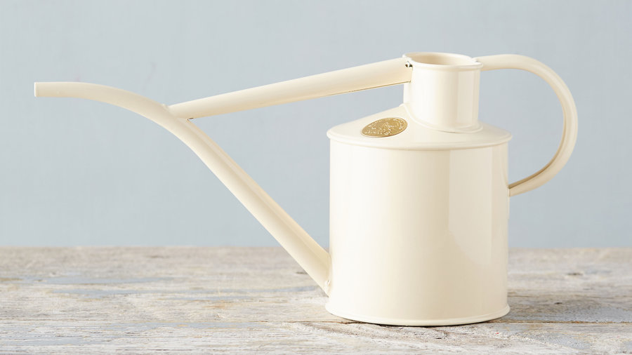 This modern twist on a traditional Haws watering can combines beauty and function. Crafted in England, and galvanized to prevent rusting, the design is a Terrain exclusive. Available in a minty green or cream color, it is an ideal garden companion.