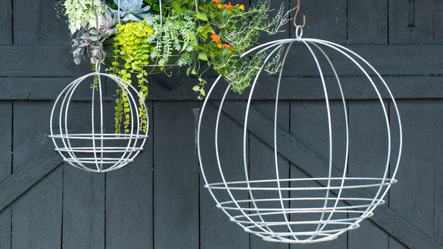 - Zinc Sphere Hanging Basket, available in four sizes, from small to extra-large, from $38