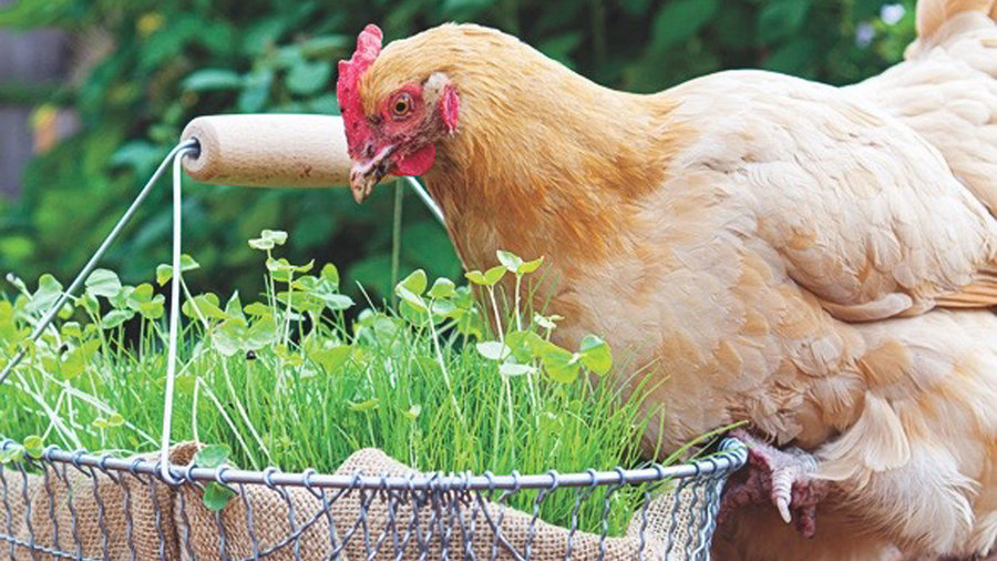 A wire basket, lined with burlap, let our Test Garden hens nibble at greens in style (every chicken’s dream). As if they were at an all-you-can-eat buffet, they went wild for the chicken forage blend from Peaceful Valley Farm & Garden Supply (groworganic.com), which we planted there from seed. An omega-3–rich mix of alfalfa, clover, and flax helps hens make healthier eggs.