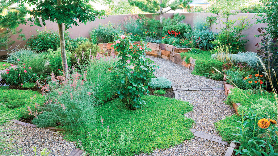 Click ahead to see how she did it with no-fuss plantings, cooling shade, and optical illusions.