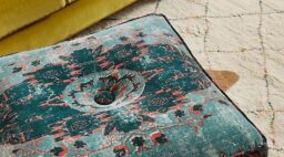 Pull one of these up and you’ll be sitting pretty on a pouf stitched together with fabric sourced from traditional Moroccan wedding blankets.