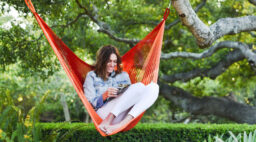 If movement is what you’re after more than a chime, consider an outdoor mobile. This handmade version is crafted from driftwood pulled off the beaches of Cyprus and is painted with geometric designs. If that doesn’t give you a quick mental vacation, just pair with a glass of rosé.