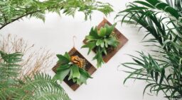Create living wall art with this staghorn fern planter that is mounted on wood and finished with burlap