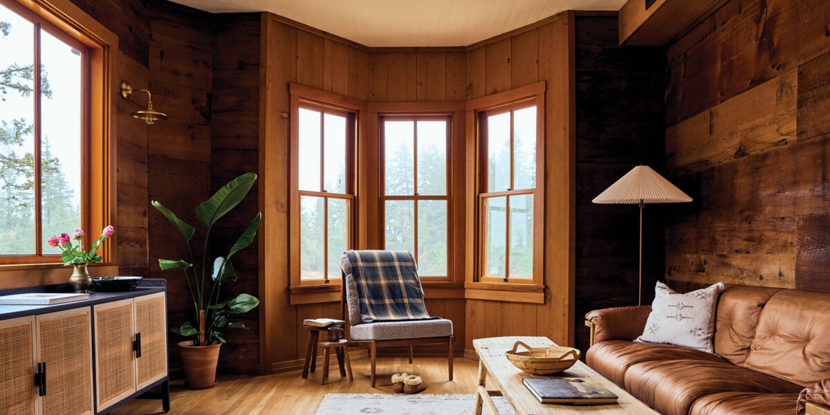 Holbrook furnished the restored 19th-century cabin with a mix of vintage pieces and furniture from Portland-based Rejuvenation. Photo by Thomas J. Story.