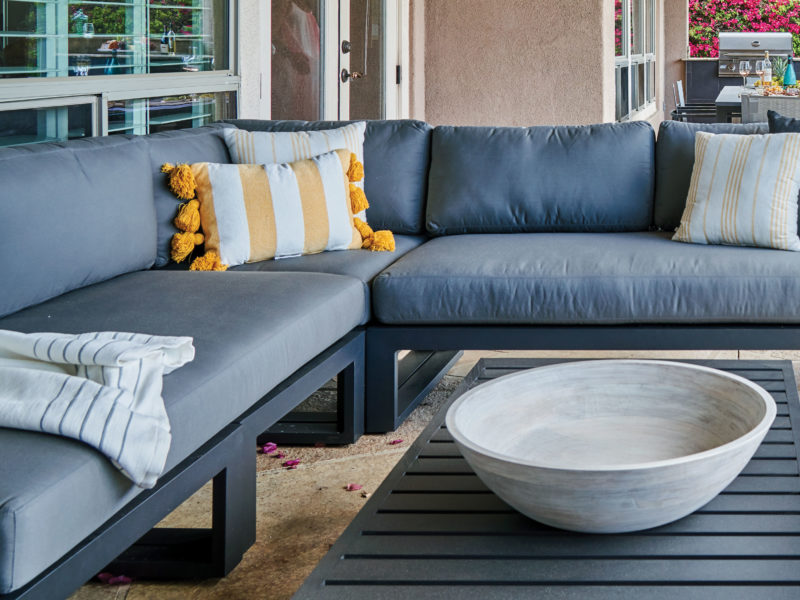 One key strategy: Investing in matching outdoor furniture and placing it in four distinct seating zones expands your living space and creates an aesthetic through line.
