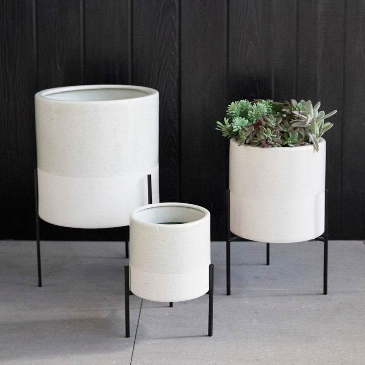 This handmade ceramic and metal planter is the perfect solution for that corner of the porch where nothing will quite fit. Play with different levels in your design scheme by stationing one slightly tucked behind a lower potted plant.