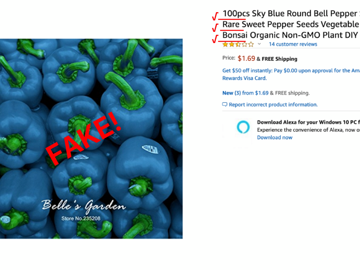 The item descriptions for these fake seeds will usually include some combination of the terms “rare” (or “very rare”); “bonsai,” even though it’s not a bonsai being sold; and “organic/GMO free.” Sometimes they tack on other terms like “DIY” just to get more hits. They’ll also typically list the number of seeds as “pcs” (seeds are normally sold by weight rather than quantity). Most of these sellers are in Hong Kong or China, but some fraudulently advertise their seeds as “USA grown.”