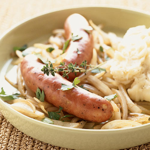Sausage with Hominy and Spinach