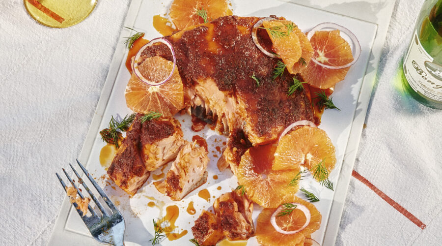 Maybe it’s sacrilege to prefer it to peppered lox (the Kramer house favorite), but lightly smoky baked salmon has always been the one for me. I pile it on buttered toast, give it a squeeze of lemon, and swoon. This soft and supple version bears very little resemblance to the many other baked salmons of my youth. Listen, I never turned down the broiled, Soy Vey–smothered salmon we ate for Shabbat dinner (that’s every Friday night for those of you unfamiliar—yes indeed, every single Friday). But who knew that lowering the oven temp makes all the difference in the world?