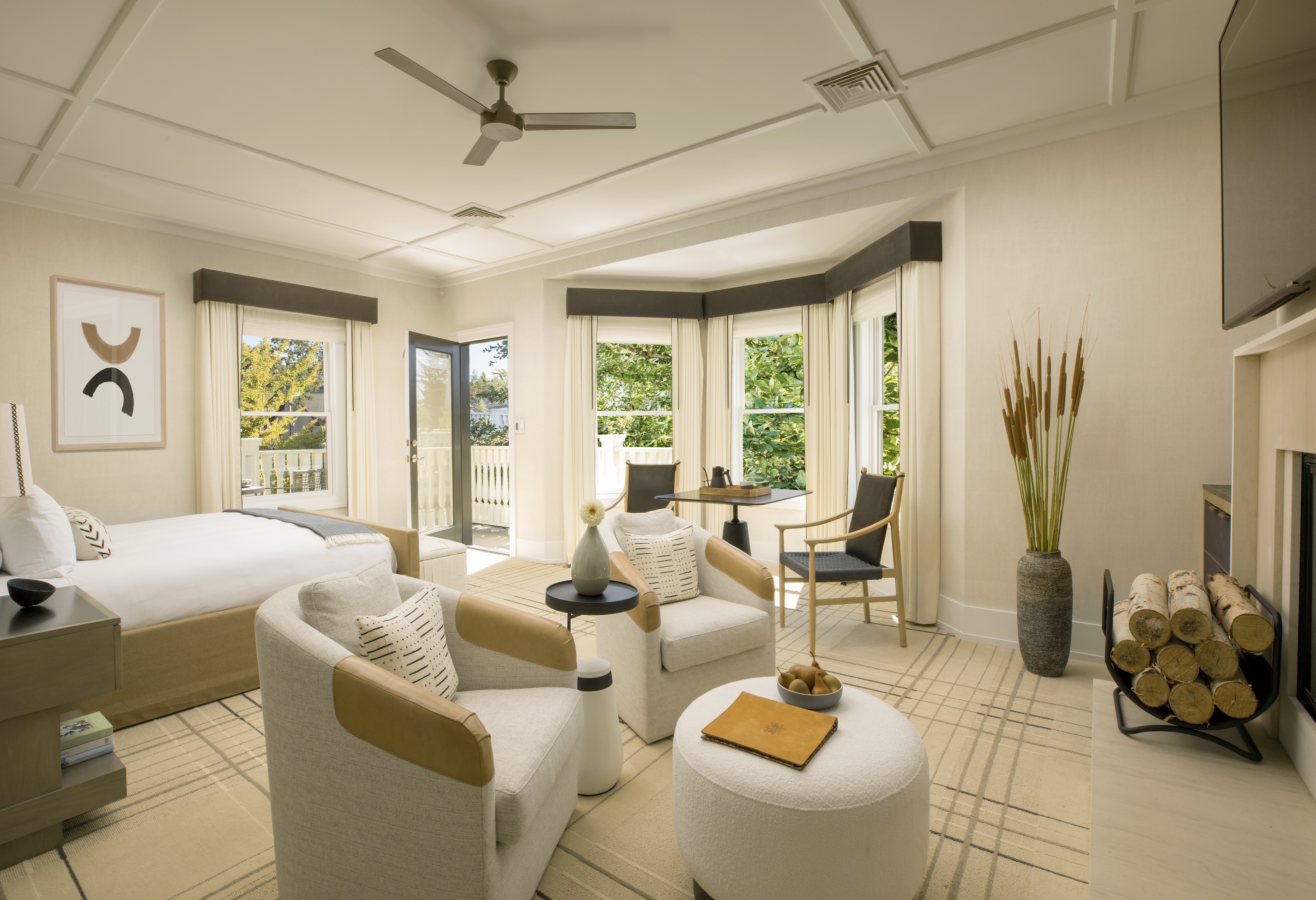 Sonoma’s iconic MacArthur Place Hotel & Spa is a 69-room luxury boutique hotel offering guests an intimate escape to Wine Country. Guestrooms feature custom-designed furnishings and luxurious bathrooms, with select rooms including fireplaces and al fresco showers and/or bathtubs. The lush six-acre property also offers a newly renovated spa with seasonal treatments, Chef’s Garden, gorgeous pool, two bee apiaries, and three culinary outlets, Layla—the dining centerpiece of the hotel—cocktail-forward Bar at MacArthur and The Porch—a marketplace featuring local purveyors. MacArthur Place is also home to an acclaimed art collection, featuring over 100 pieces from independent artists around the country as well as an inspiring artist in residence program in collaboration with Uprise Art, welcoming artists from around the country to gather inspiration and create pieces that will grace the hotel’s halls.