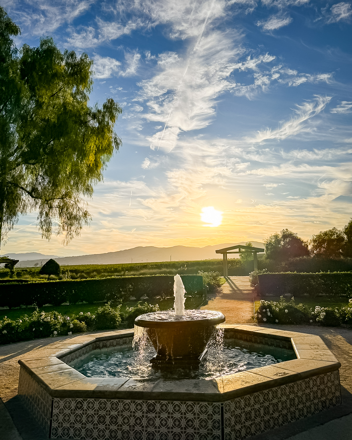 Surrounded by panoramic vistas of estate vineyards, manicured gardens, and distant mountains, our boutique Inn offers a tranquil sanctuary for the discerning traveler. From fireside conversations to leisurely strolls to adjacent tasting rooms, guests are invited to immerse themselves in the beauty of the serene landscape. Adirondack chairs beneath the canopy of pepper trees and a serene one-acre pond provide moments of peaceful reflection.