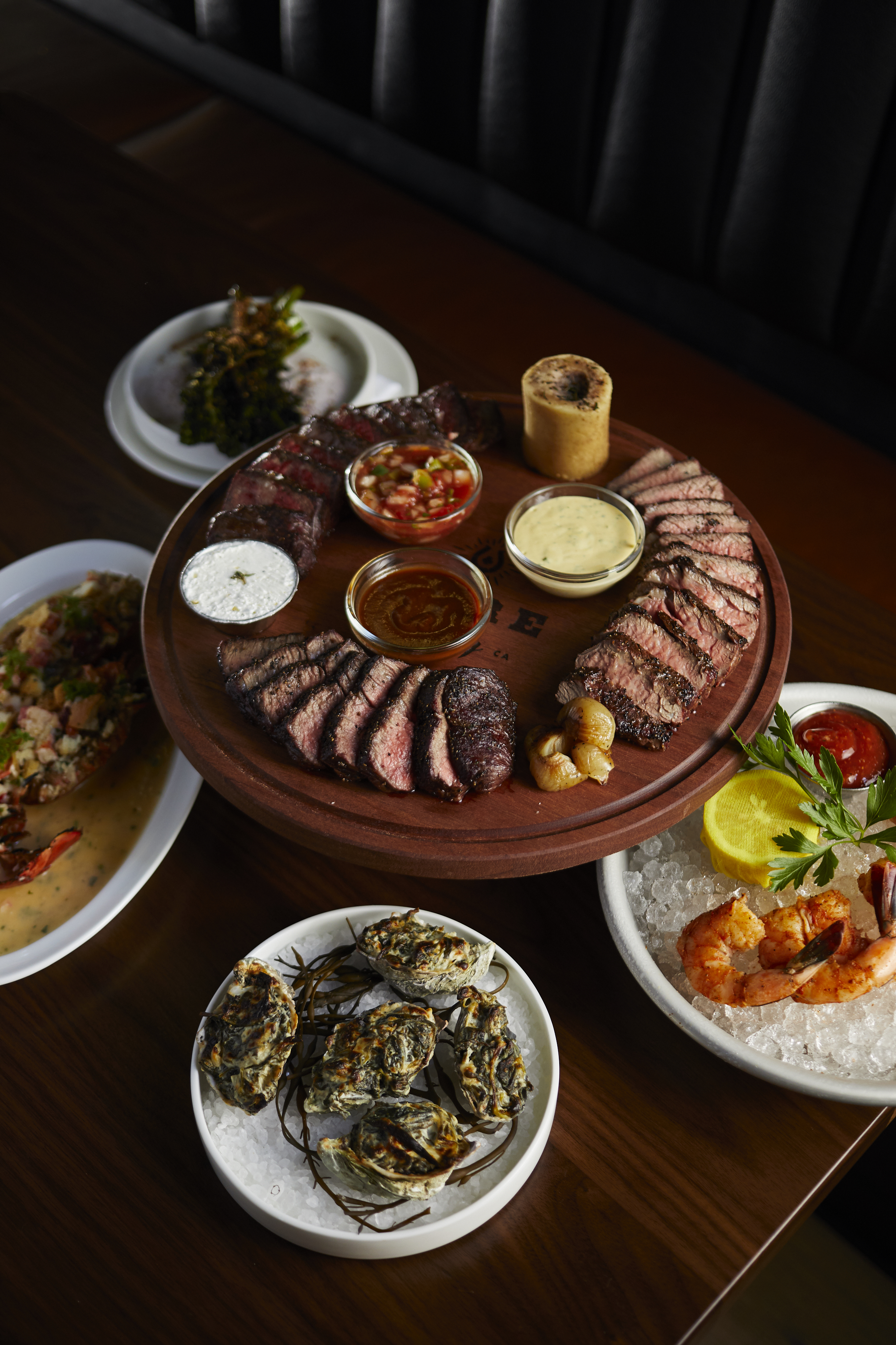 Located in Santa Barbra’s bustling Funk Zone, Rare Society Santa Barbara pays homage to retro steakhouses once found on the Las Vegas Strip and celebrates Central Coast Santa Maria-style grilling. The glamourous restaurant incoprorates hues of black, gold, and cognac, embracing a modern dining aesthetic in the heart of Santa Barbara. The bold steakhouse-inspired menu from Chef and Owner Brad Wise’s features cuts like ribeye, American wagyu, and filet mignon that are butchered and dry-aged in-house to Chef Wise’s specifications and grilled over American Red Oak on a custom-built, Santa Maria-style grilll inside an open exhibition kitchen.