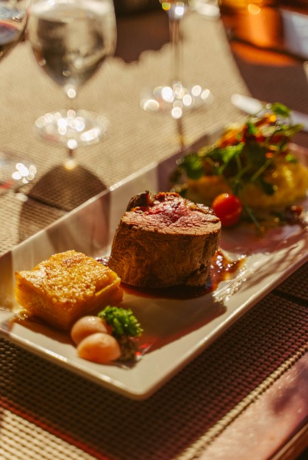 The Napa Valley Wine Train offers an unparalleled dining experience, where guests enjoy a front-row view of Executive Chef Rodrigo Cuadra and his team preparing exquisite, made-to-order multi-course meals in the kitchen car. Chef Cuadra’s menus celebrate Napa Valley’s best local and seasonal ingredients, all sourced from trusted purveyors committed to sustainability. Each dish showcases the region’s vibrant food culture.